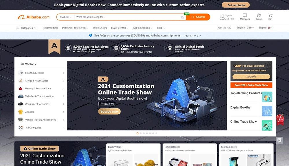 Alibaba is one of the largest eCommerce marketplaces in the world. It’s a directory that helps buyers find and connect with suppliers in China and worldwide.