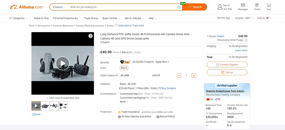 You can also use Alibaba’s Trade Assurance escrow service for additional protection. Alibaba will keep your money secure until you confirm delivery and are happy with the order.
