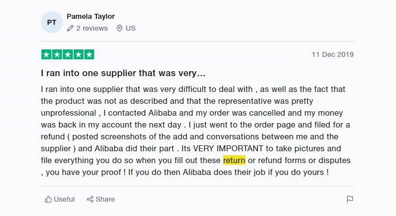 Here’s an Alibaba buyer describing their experience with the refund process: