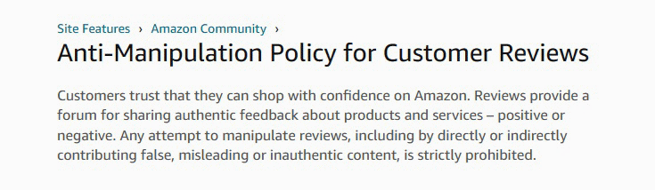 You must also avoid using manipulative language or offering incentives in exchange for positive reviews. Amazon will warn you and potentially kick you off the platform for breaking its guidelines.