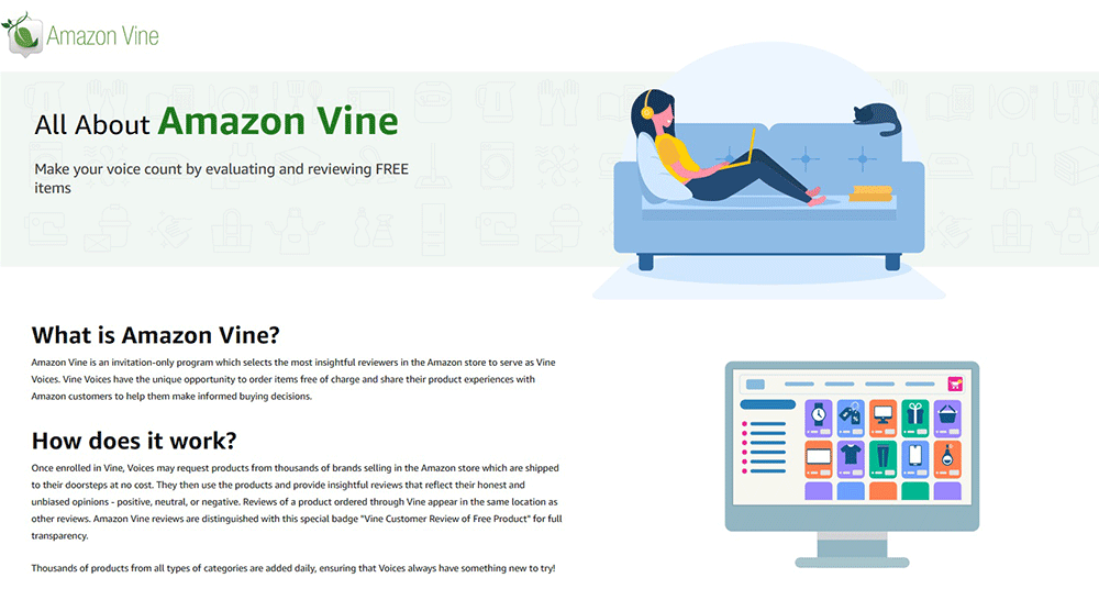 You must have a professional selling partner account registered in Amazon Brand Registry to qualify for the program. And you’ll need to provide free products for Vine Voices (Amazon’s trusted reviewers) to review.