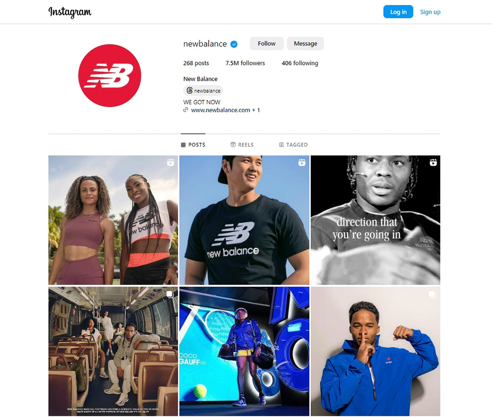 This will help your posts be more recognizable and stand out when users scroll through their feeds. For example, New Balance uses a consistent visual style on all its posts.