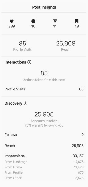 If you're driving traffic to your eCommerce site, this metric will tell you how many clicks you get from your Instagram profile and posts.