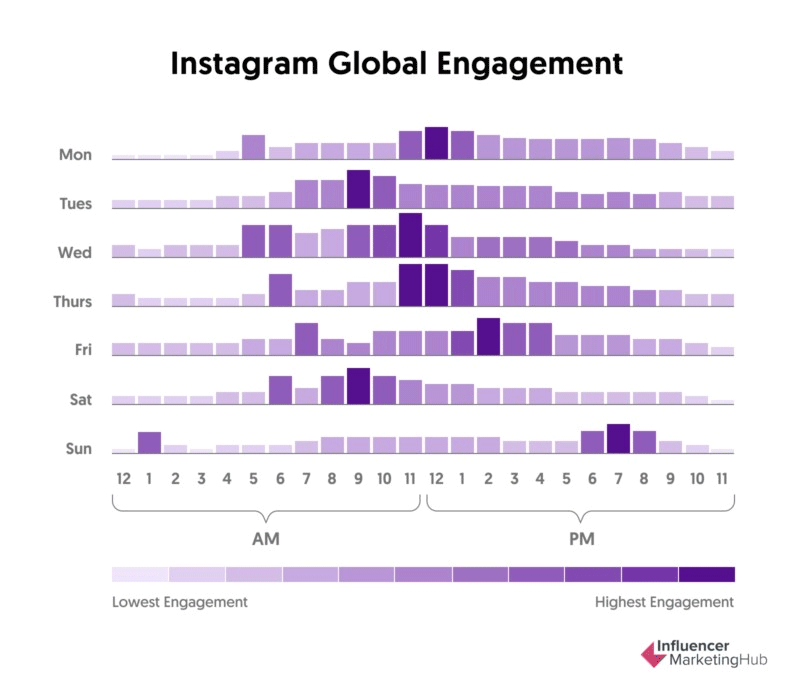 According to Influencer Marketing Hub, the best times to post on Instagram are: