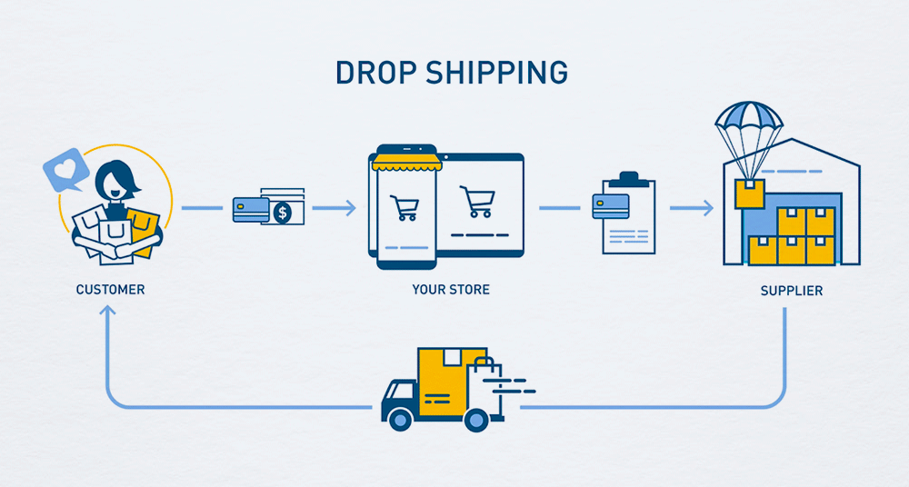 When someone places an order on your website or store, the supplier sends the products directly to your customer.