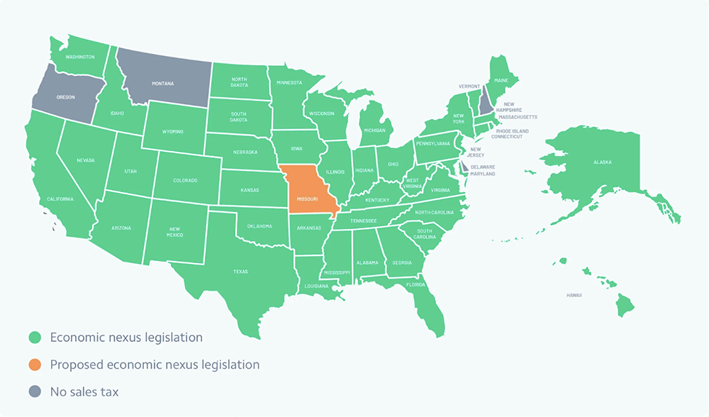 You’ll need to collect sales tax on items you sell in a state with tax nexus. For example, if you're in California, any customers you acquire in that state must be charged sales tax because you have a nexus, i.e., you're physically in that state.