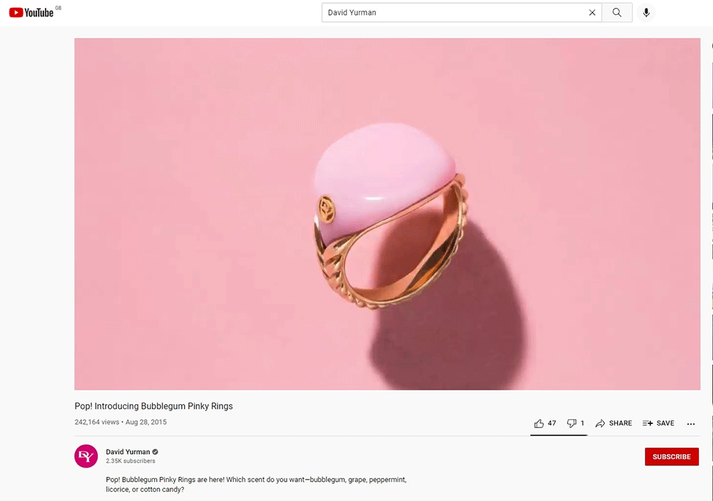 The jewelry brand David Yurman uses close-up videos to showcase the fine details of its products.