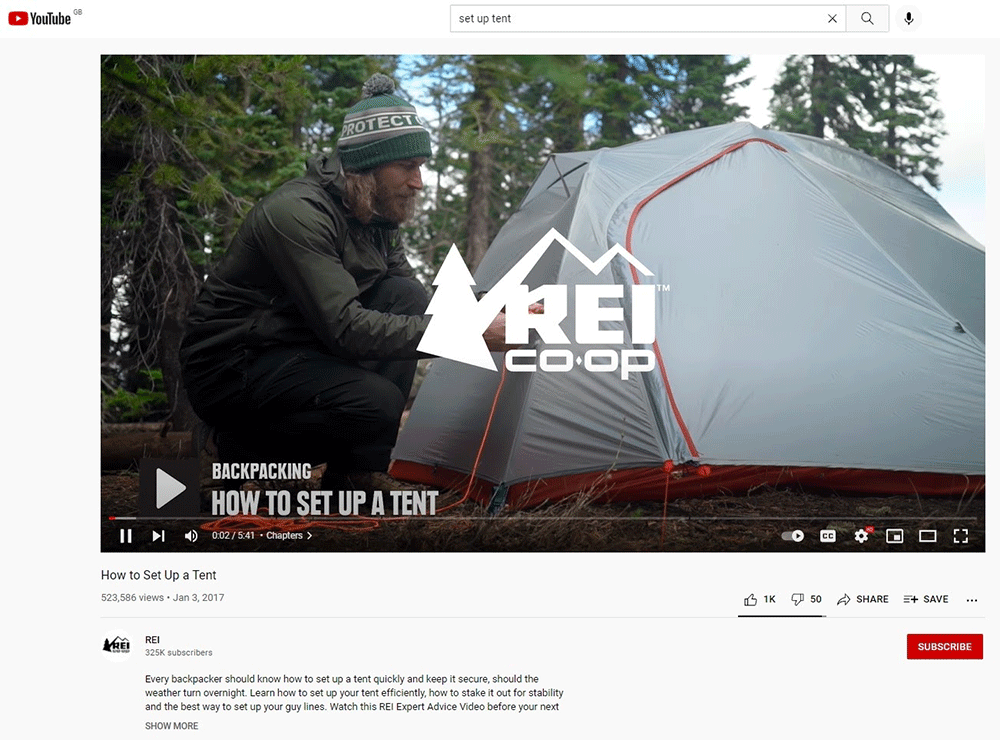 This video by REI is a good example of a "how-to" video done well. It shows the product in action and how to use it.