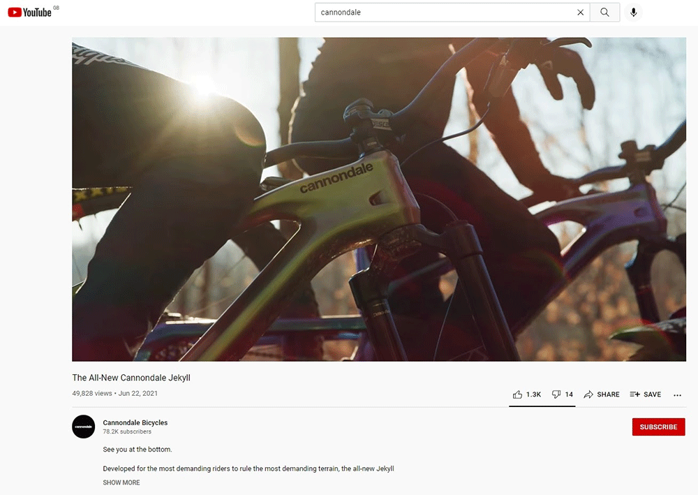 For sports products, it's essential to convey energy and speed in your video content. This example from Cannondale Bicycles shows the product in action in a slick, fast-paced demo video.