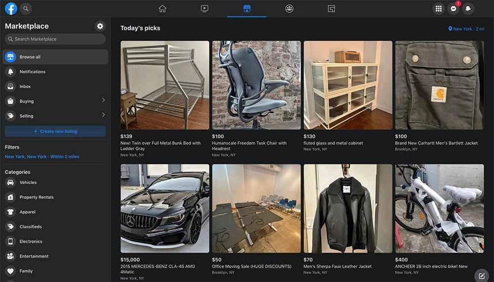 Facebook Marketplace is similar to eBay in that most people sell used or second hand items. It’s a convenient place for people to list items that they want to get rid of on the platform and target their local market. In the US, FB Marketplace offers additional features more suited to professional sellers such as Facebook Checkout, making it more like a traditional eCommerce store that mostly runs itself.