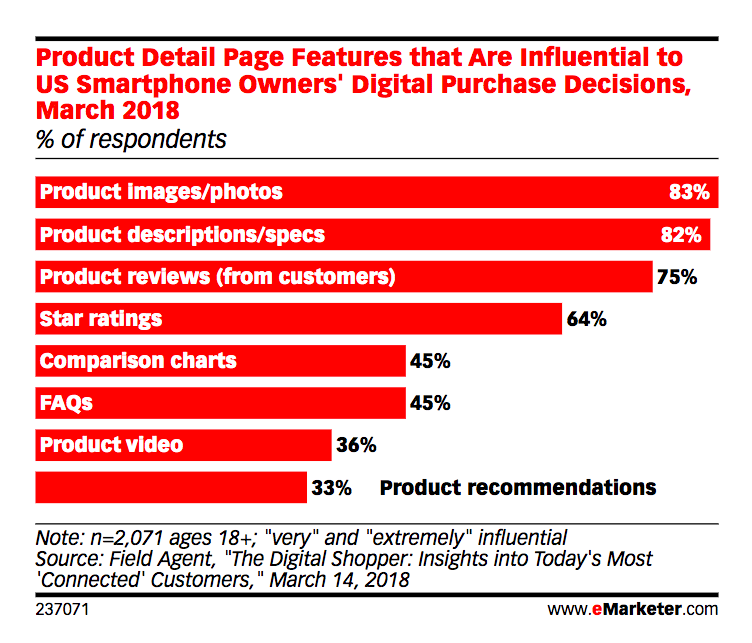 Make sure your product listings are doing a good job of converting traffic into sales. According to a recent study, product images and descriptions are the most influential on-page elements for mobile shoppers in the U.S.: