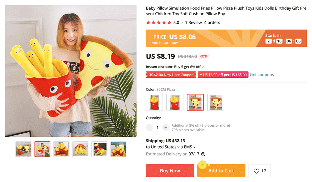 AliExpress is a popular product sourcing platform for dropshippers. It provides quite a bit of useful information, such as star rating, reviews and number of orders.