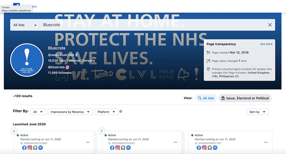 Also, because Facebook owns Instagram, you’ll also see the brand’s Instagram ads here.
