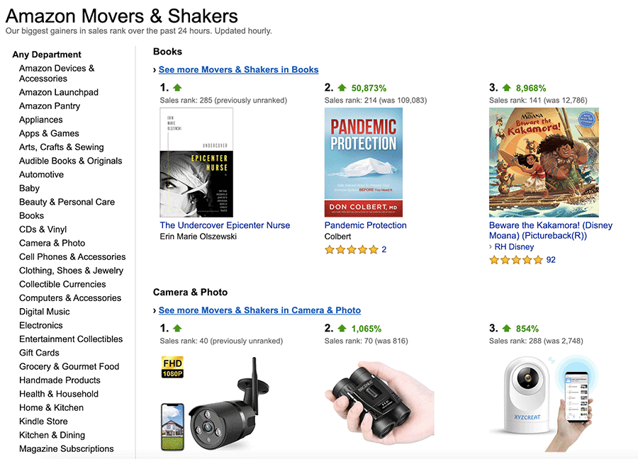 Visit Amazon Movers and Shakers to see the best-performing products over the past 24 hours.
