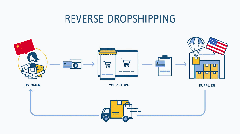 Reverse dropshipping works in much the same way, except that you’re selling products produced in traditionally importing countries (e.g. the USA) to customers in traditionally exporting countries (e.g. China). So your product is traveling the reverse way, aha!
