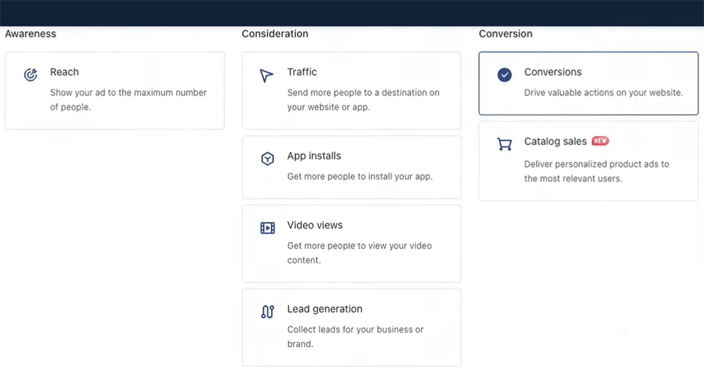For most dropshipping businesses, conversions will be the primary objective for ad campaigns.