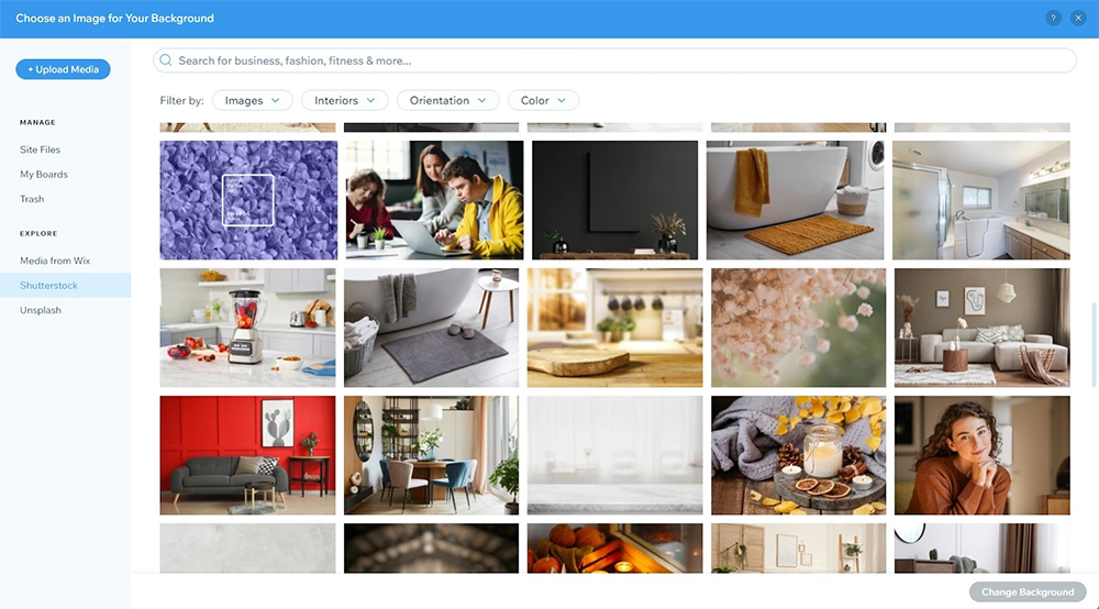 Once you’ve signed up, you can choose to use the Wix ADI designer or select a template to customize.