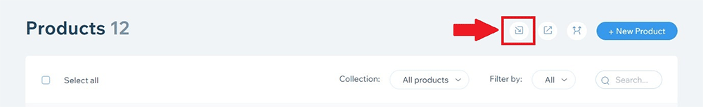 Click on ‘Store Products’ in the left-hand menu of the Wix dashboard. Then, click on the ‘Import’ icon.