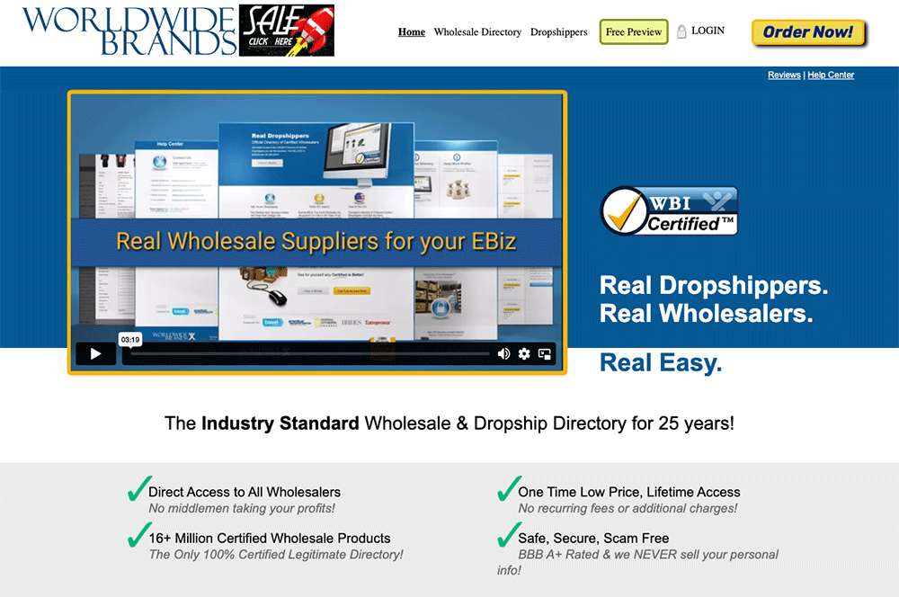 Worldwide Brands is a wholesale directory that connects online sellers with legitimate suppliers. It’s marketed as a high-end resource, designed for sellers who want to ensure they are dealing with reputable wholesalers. Since its inception in 1999, Worldwide Brands has built a reputation for offering a large and diverse list of suppliers, particularly those based in the United States.